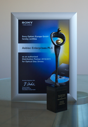 ASBISC Enterprises plc. has received the "Outstanding Performance in Eastern Europe" award from Sony Optiarc, one of the leading suppliers in Optical Disc Drives, in recognition of the successful distribution of Sony Optiarc products in Eastern Europe.